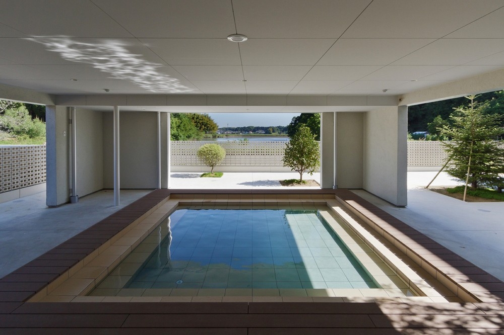 Детский сад площадью 1,242 квадратных метра в Японии от архитекторов HIBINOSEKKEI находится в окружении природы. Летом вода разливается в поле, деревья становятся красными осенью, зимой идёт снег, а весной начинают появляться цветы. В столовой большое окно открывает пейзаж, чтобы дети могли наслаждаться едой, видя изменение пейзажа в течение года. Для того чтобы стимулировать воображение ребёнка, в зале установили освещение случайным образом, как если это был свет от созвездия. Общее пространство для детей и родителей выглядит как открытое лаундж-кафе и помогает посетителям чувствовать себя спокойно и комфортно.