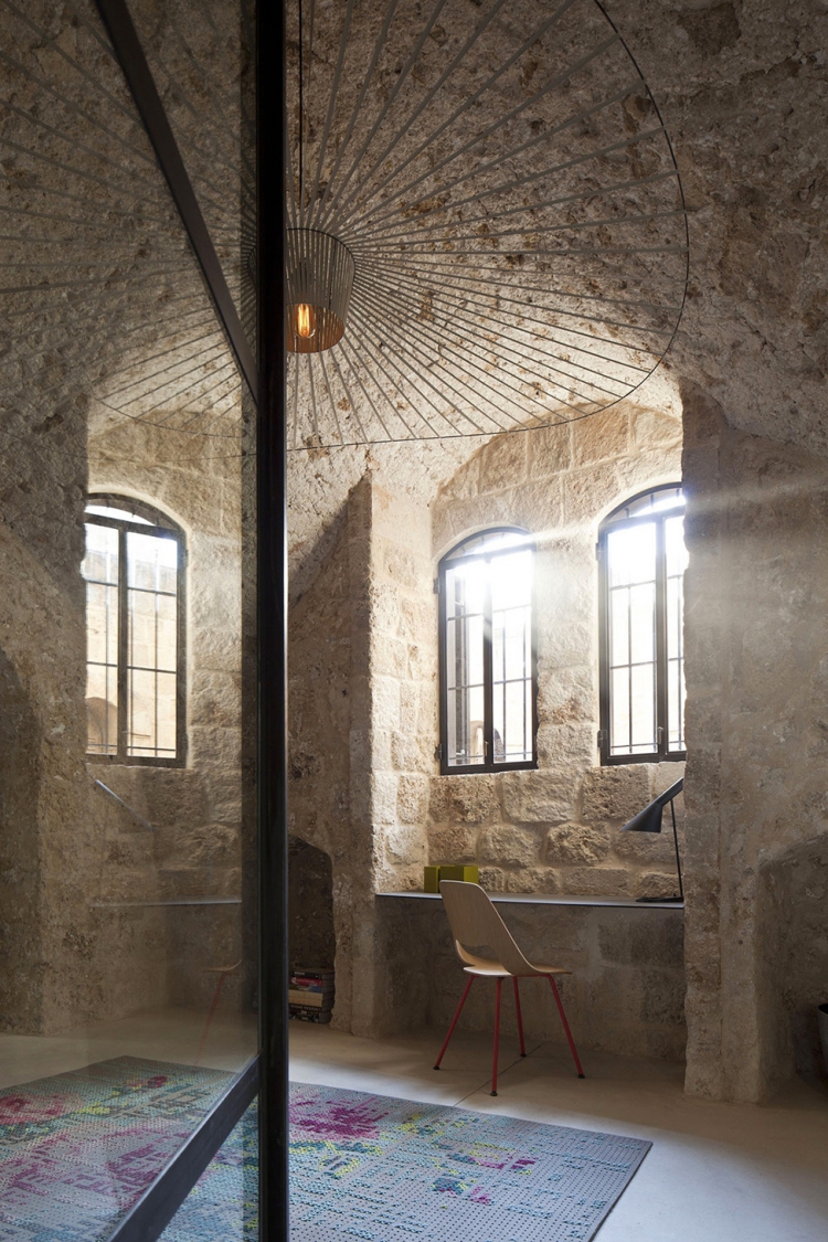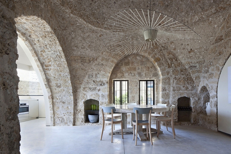 Проект Factory Jaffa был реализован студией Pitsou Kedem Architect в городе Яффо, Израиль. Частный дом представляет собой удивительное сочетание исторического фасада и современного интерьера. Каменные стены с потрясающе красивыми арками и сводами сочетаются с бетонными вставками, стеклянными перегородками и парящей в воздухе лестницей, а лаконичная мебель украшает пространство площадью 180 кв. метров.
