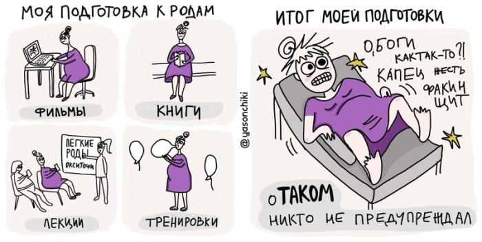 Иллюстратор и мама в одном мурле с ником yasonchiki ведет блог в инстаграме и паблик Вконтакте. Девушка публикует комиксы про бытие и родительство. Мы сконцентрировали подборку с развеселыми картинками, вышедшими из-под ее электронной грозди, для поднятия расположения.