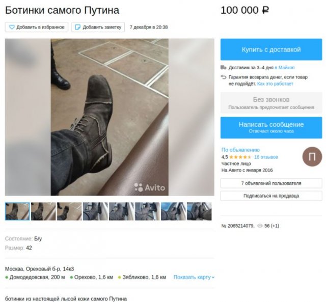 В Интернете найти можно вообще что угодно. Ранее, примерно, катали про визитку Владимира Путина. Правда, не всего ее можно найти на просторах всемирной паутины. Авторы этих объявлений(то ли в шутку, то ли всерьез)пробуют загнать вещи, какие якобы относились президенту РФ.